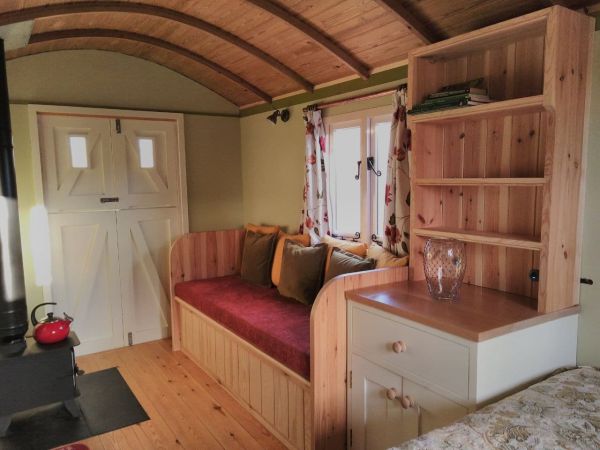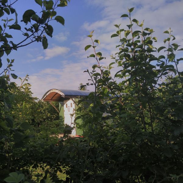 Built by us out of reclaimed materials, the first Shepherd Hut served as part of the temporary accommodation our family lived in while completing an eco self build in 2012. In 2023 we added a second home-built wagon.
