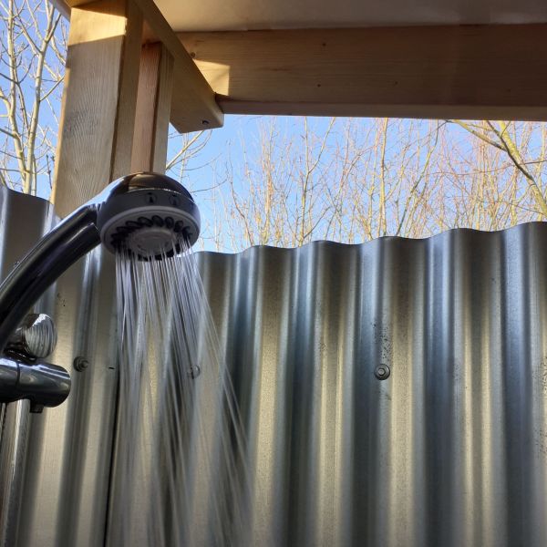 Each wagon has it's own kitchen and toilet, the outdoor shower is a shared facility.
