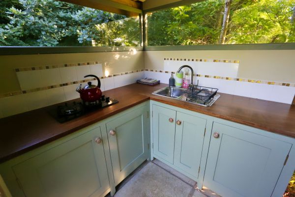 Each wagon has it's own kitchen and toilet, the outdoor shower is a shared facility.