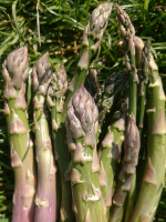 Fry sesame seeds in a small amount of oil till they start to pop. Wet the asparagus and cook it with the seasme seeds with the lid on for two minutes, shaking occasionally.