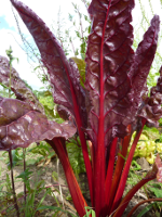 We grow Swiss (white stem), ruby (red stem), rainbow (mix of colours including red, pink and yellow).